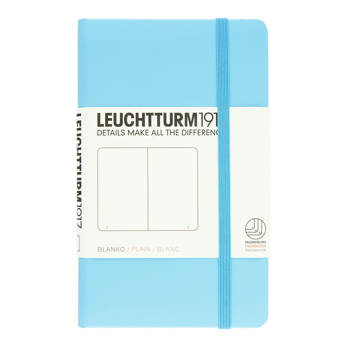 Leuchtturm1917 Pocket Notebook A6, 185 plain numbered 80 g/m² pages. Eight perforated easy detachable sheets. Page marker and an elastic enclosure band. Thread-bound book opens flat. Dimensions: A6 (90 x 150 mm).